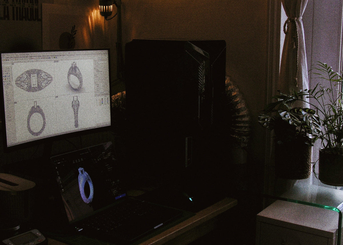 Once defined, forms are translated into jewellery through casting and careful hand-finishing. Surfaces are refined through successive stages of sanding and polishing, preserving the integrity and tension of the original form.